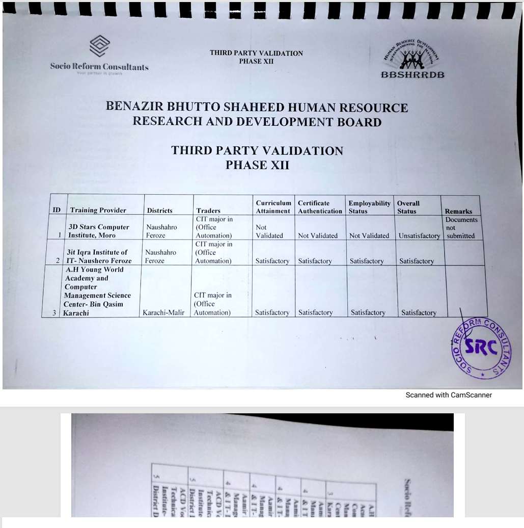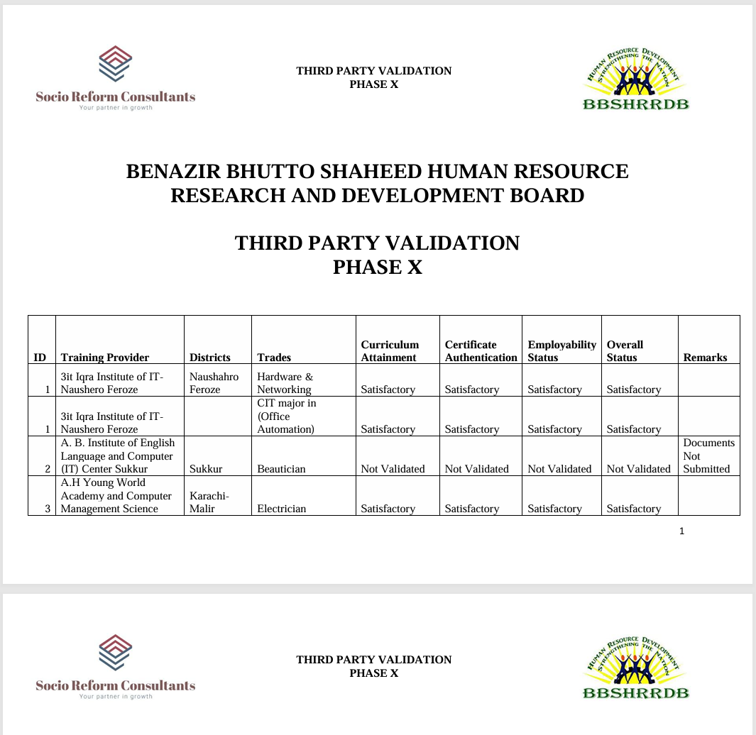 پرائیویٹ سیکٹر ٹریننگ ونگ کی تیسری پارٹی کی توثیق کی رپورٹس